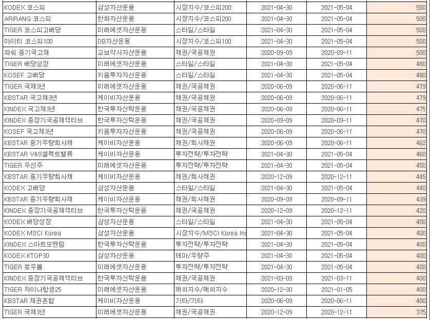 ETF에 투자하여 분배금을 받고 싶으신 분들은 위 표를 보시고 투자를 하시면 좋겠습니다