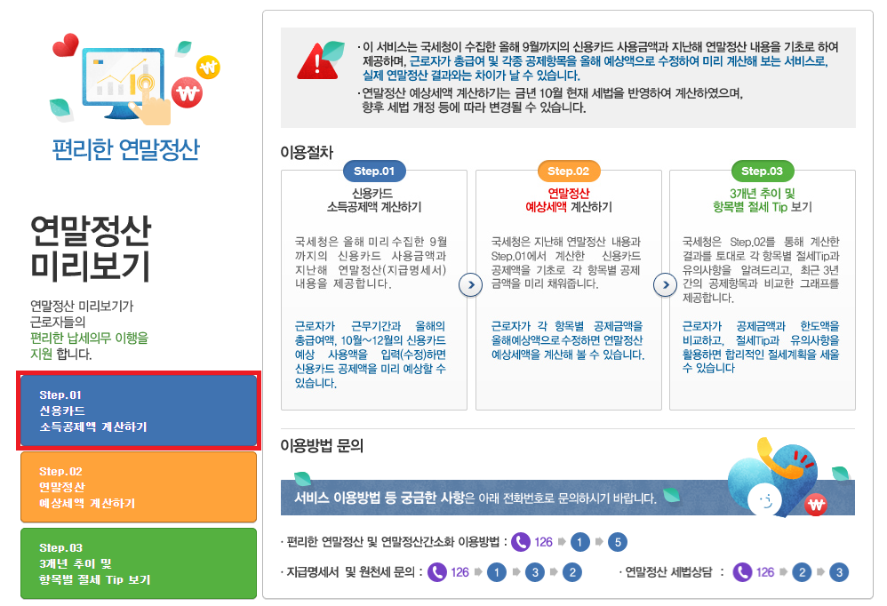 미리보기만 하고 끝나는 것이 아닌 신용카드 사용내역, 항목별 절세 도움말 등을 제공하여 어떻게 절세를 해야 할지도 도움을 받으실 수 있습니다